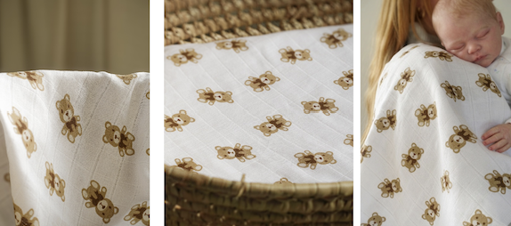 MuslinZ is delighted to announce the launch of their charming new teddy bear print, arriving across its range of 100% cotton muslin baby essentials.
